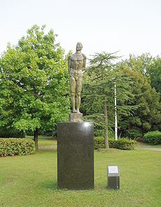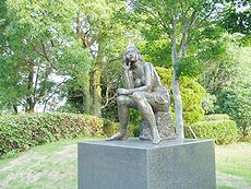 (左)“古賀忠雄彫刻の森”の入口です(^.-)☆ (中)佐賀城公園のお掘りと遊歩道です (右)古賀忠雄彫刻の森の景観です(^.-)☆