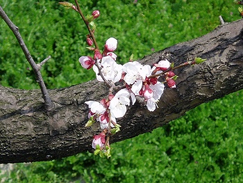 華やかな満開も去り、いくつかの杏の木に散らずに未だ残っています杏の花…これもまたイィものではありますネ(^.-)☆
