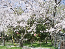 先日の土・日曜日が満開の見頃で、それ以降は日増しに散り始めていますけど、まだまだサクラ吹雪の中を散策しますと充分楽しめますようです。