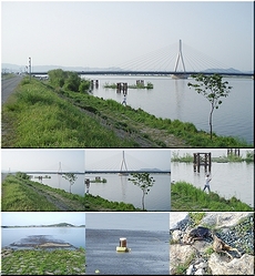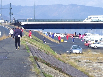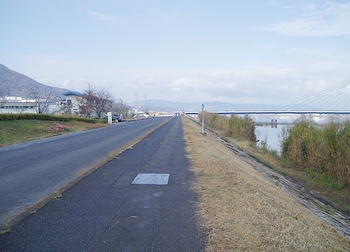 今から芦田川大橋下を抜け土手に上がり、河口堰を渡り、箕島側の土手・河川敷を川上方向に帰って行かれますのでしょうか…