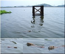胴長短足のゴンchanも泳ぎますと頭とお尻が水面から出まして、いかにも胴長短足が伺えますから(^.-)☆