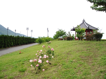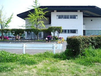 芦田川大橋下を抜けますと土手に上がり竹ヶ端運動公園に。
