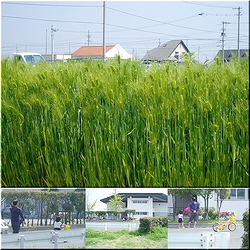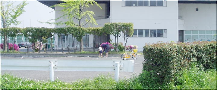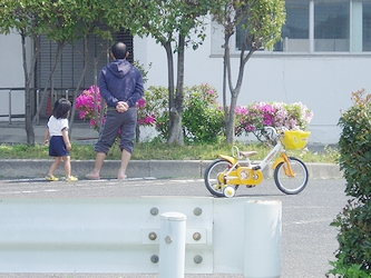 チビッコとお父さんの親子連れが、睦まじく自転車乗りの練習をしておられまして、つぃカメラを向けました。