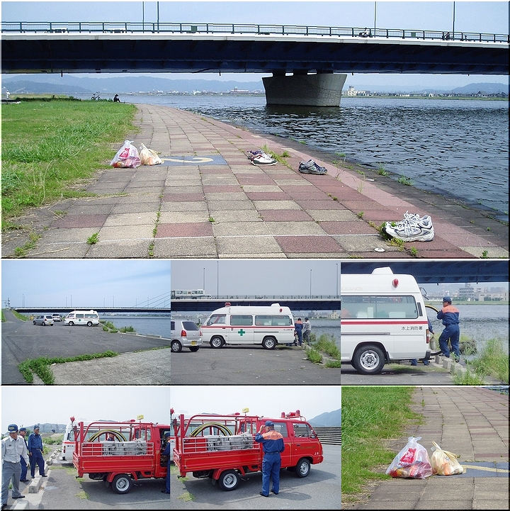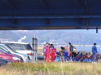この日もノンビリと芦田川大橋までヤッて来ました時には既に訓練は終了で、後片付けの段階でありました。