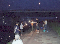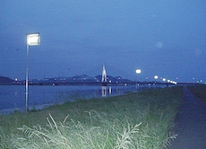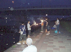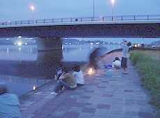 河川敷では「電撃殺虫機」が等間隔にズラッと並び、この灯りが仲々キレイ。