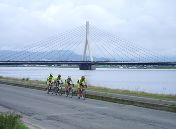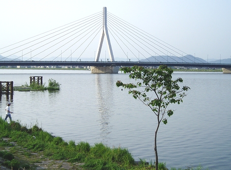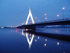 そして、穏やかな河面に斜張橋の主塔が映りまして、これまたキレイでありました(^_^)v