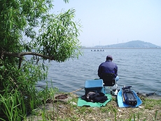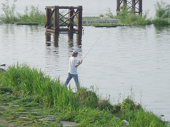 この日は釣り人がお一人、せわしそうに釣り糸を投げておられましたねぇ〜