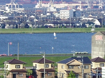 河口堰から芦田川大橋方向では追い風ですから、結構暑さも感じます。