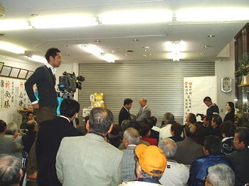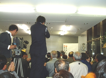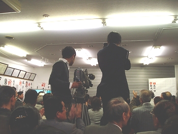 水呑町の事務所には、13人の中で真っ先に当確の報が届いた。
