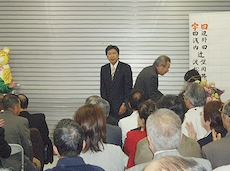 歓声に包まれた宇田さんは「県政を県民の手に取り戻す」と誓った。