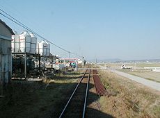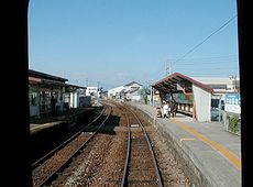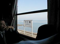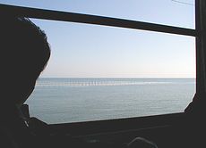車窓から有明海を (中)島原鉄道“島原外港”駅です (右)島原外港駅近くの景観です