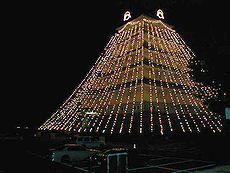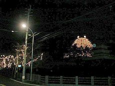 島原外港駅近くから“眉山”を…その向こうに普賢岳があるのですねぇ〜 (右)島原城はイルミネーションで綺麗でした(^.-)☆