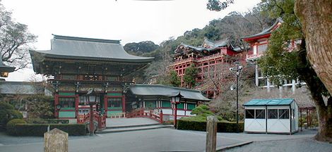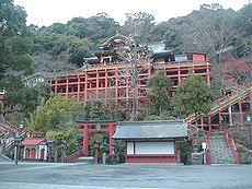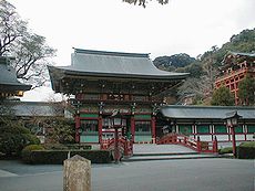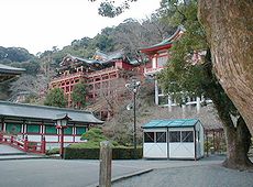 昭和24年、広壮な社殿が火災で消失しましたが、同32年に再建されました。神域内には神殿、拝殿、回廊、神楽殿、社務所、楼門などがあります。主