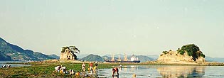 GONchanのご主人samaは未だに見た事はないようですけど、年に何度か、この八重子島が陸続きになりまして、その時期に運良く出くわしますと、歩いて八重子島へと渡れますようです。