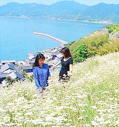 因島市重井町で、市の花「除虫菊」が可憐な白い花を咲かせ、初夏の訪れを告げます5月の中旬頃が、毎年見ごろのようです。