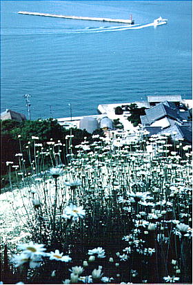 重井西港を見下ろす山の中腹にある村上さんの畑では、白い花と青い瀬戸内海や空が、美しいコントラストを作り出しまして、二つの除虫菊畑は花が咲いている間、アマチュアカメラマンや観光客たちに開放されるのですよ(^.-)☆