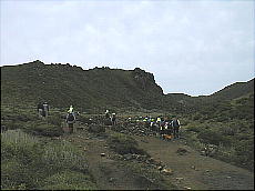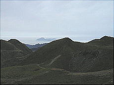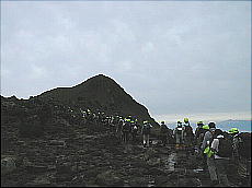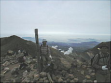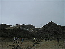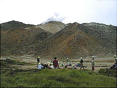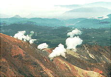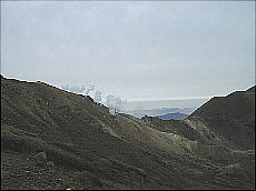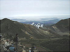 (右)硫黄山の水蒸気の噴煙です。この位置からでも「ゴォッ〜」と不気味な音が聞こえまして、少し感激です(^-^;