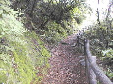 (左)芝生で覆われた多目的広場 (中)小さなミニ庭園もあります (右)こんな山道を抜け灯台・野営場に向かいます