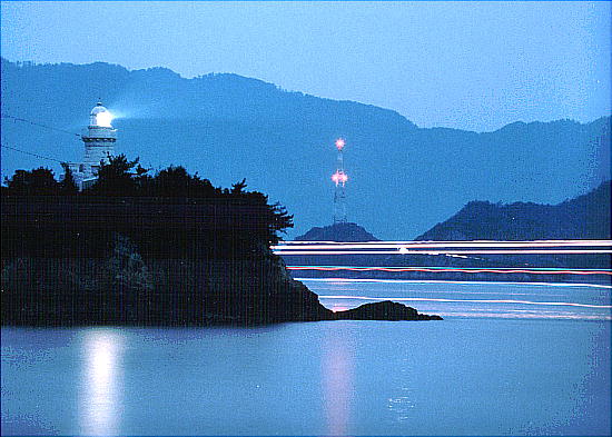 因島大橋の下に可愛いぃ灯台が存在しますけど、これが大浜埼灯台なんですよ(^-^)