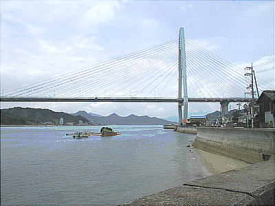 生口島へのジョギングからの帰路、生口橋を渡っていまして、ふと橋の下付近の海岸沿いに眼をやりますと、多くの人達が集まりまして海を眺めています。「どぅしたのだろぅ?…」と、急いで走りまして海岸沿いのバス道路に降り、沖合いを眺めて納得です。