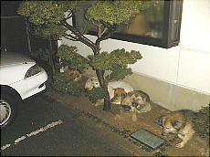 (右端)3月4日は、あいにく終日小雨が降り続いておりまして、GONchanのご主人samaが「新酒まつり」より戻って来ますと、GONchanの友達でありますノラsan達が7匹、軒先で雨宿りしながら眠っておりました(^-^)