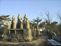 仁王像のある山門から頂上への参道にはさまざまな姿態と表情を持つ石仏が私達を迎えてくれます。