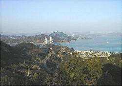 (左)展望台から生口橋方面を (右)展望台から因島大橋方面を