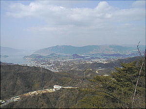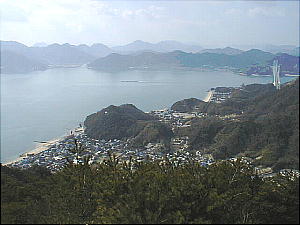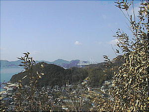 E因島、因島大橋を展望しましたもので、この方向から歩いて来ました。