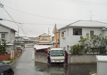 途中、こんな雪景色の中で引っ越し作業をしておられますお宅が…