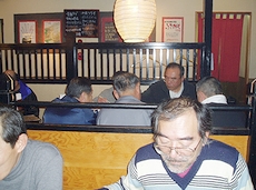 あいにくのボタ雪で冷たい中を、傘さしましてテクテクと開催場所の「びっくりカルビ水呑店」にと出かけましたGONsanです。