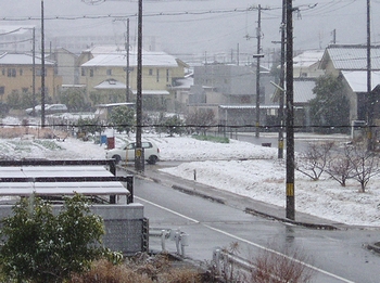 また窓から外の様子を伺いますと、んっ?!いつの間にか我が家周辺は雪景色。