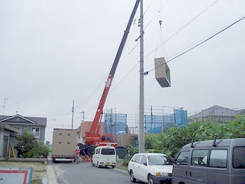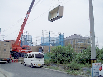 先日、セキスイハイムsanが積み木を重ねるように、重厚な建物を1日で築いておられます様子を楽しく見物させて頂きました。それから、そんなに日をあけずに、今度はそのお隣りにまた同様な工法で新築物件を建設です。