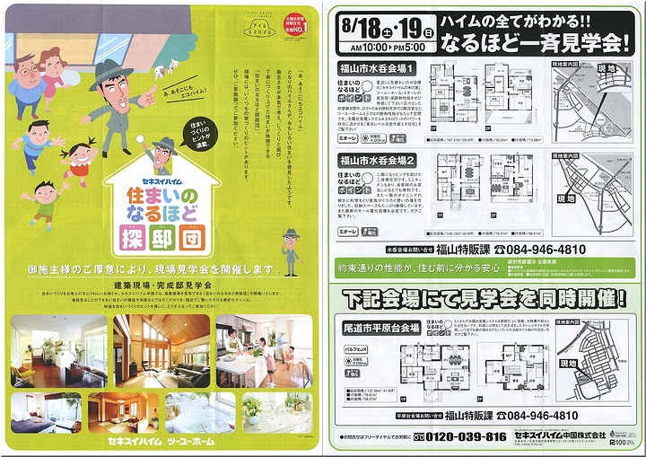 それが、2ヶ月どころか、あれから1ヶ月で入居可能な状態に完成してしまいましたよ(^_^)v先日・8/18(土)の朝刊の折り込みチラシの中に『新築現場見学会』のご案内が入っておりまして、見れば我が家の近隣の物件です(^.-)☆