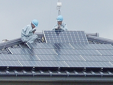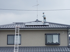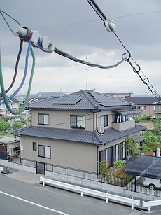 | ■2005年06月18日 昨日(6/16)はソーラー発電のパネル設置工事がありました(^.-)☆ 入梅とは言いましても仲々梅雨らしい降雨もありませんで、暑い日差しが続いています福山市内。 ![]() こんな中、昨日・6/16には太陽光発電のパネル設置工事がありまして、無事終了(^.-)☆ 先週の工事1日目には、室内配線工事・屋根へのバネル設置の取り付け準備工事。 そして、2日目の昨日にはパネル設置工事。 A.M.9:30頃に来られまして、工事終了はA.M.11:30。 工事自体は2日間と短期間で終わりましたけど、後は中国電力sanの検査を待つのみ。 今から一週間以内に中国電力sanの検査がありまして、この検査に合格しますと、いよいよ我が家もソーラー発電が稼働です(^_^)v 挿入しています画像は、昨日のパネル設置工事の様子を撮りましたものです。 南向きの屋根に15枚、西向きの屋根に5枚の計20枚のパネル。 早く中電sanの検査が終わりまして、稼働開始となりますのが楽しみですネ。 投資額に見合ったソーラー発電となりますかどぅか… 稼働後の実績を見まして効率が良いようでしたら、色んな方々にソーラー発電をアピールしたいと思いますけど(^.-)☆ さて、どぅなのでしょうねぇ〜 因みに我が家のソーラーはサンヨーsanですけど、事業用には優れておられますサンヨーsanも個人住宅向けでは後発となっておられますネ。 ここ最近、個人住宅向けに注力しておられますけど… とにかく投資額に見合います効率的な稼働となりましたら宜しいのですが… とにかく、楽しみではありますよ(^-^)//" |