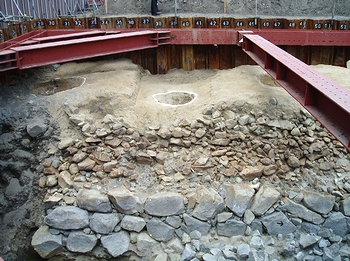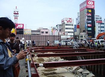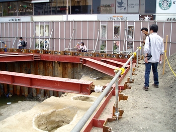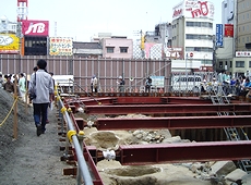 勘定所に関わる屋敷跡等の検出が予想されましたが、度重なる駅前利用により地表面は掘削されてあり、遺構は確認できなかった。