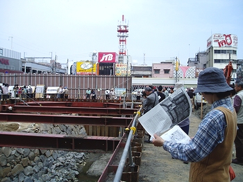 今日・5/12(土)は、先日の中国新聞sanのこんな記事に誘われまして、福山市民球場での「広陵×呉宮原」戦の観戦後、JR福山駅前の福山城外堀遺構の見学会に出かけて来ました(^.-)☆