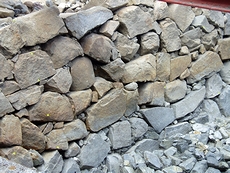 石垣の基礎石となる根石は、地盤となる砂上の据えられ、上部に積まれる石材よりやや大きめで、前面に15cm前後突き出ている。なお、根石の下に胴木は置かれていなかった。