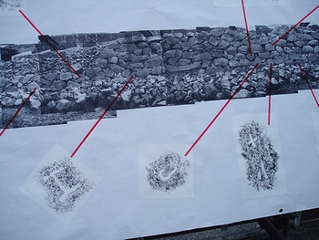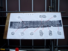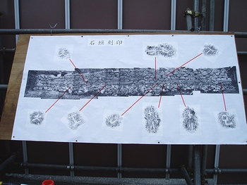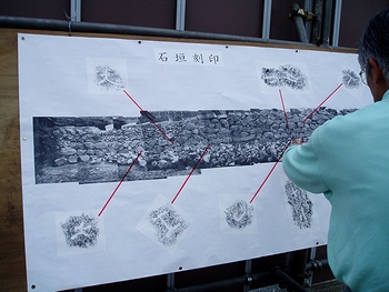 【写真説明】市教委が公開した石垣を熱心に見学する市民たち