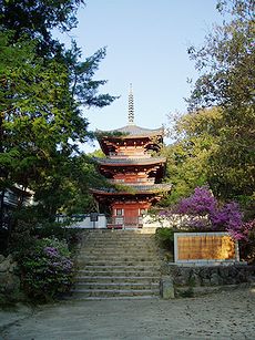 宝福寺三重塔は、昭和42年(1967)年の解体修理の際、永和2(1376)年建立の記録が見つかった。建築様式は、禅宗様と和様を折衷した三間三重塔姿。安置する大日如来像と四天王には全国から参拝者が多い。