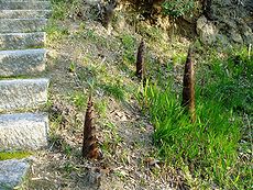 (中)“復元した土塀は残存しているものを参考とした…”との表示板が(^.-)☆
