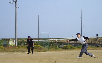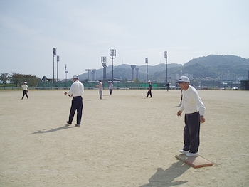 ルールも一般的なソフトボール規約の適用ではありませんで、ピッチャーは山なりのボールを投球しなければなりませんし、ファウルが3球続きますと即アウト(^-^;
