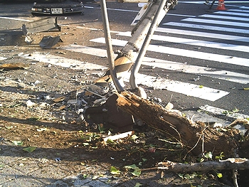とにかく、凄いスピードで走行しておられ、ハンドル操作を誤り信号機に激突されましたのでしょうねぇ(^-^;