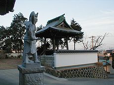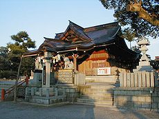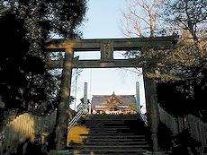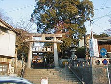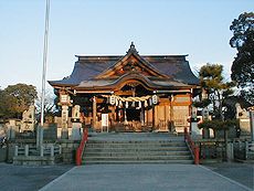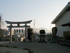 (左)風治八幡宮の境内で