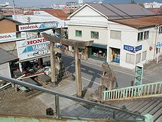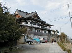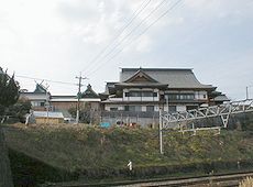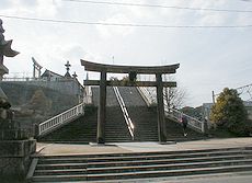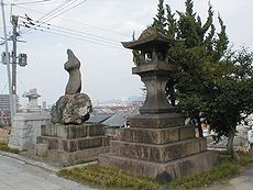 (左)多賀神社を石炭記念館から (右)多賀神社を線路側から
