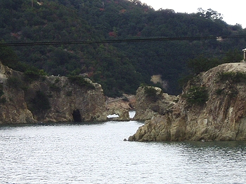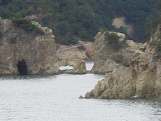 (右)対仙酔楼から眺望しました弁天島の浸食されました岩です(^.-)☆