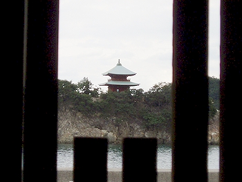 (右)格子戸越しに眺望します弁天島もイィものですネ(^-^)/