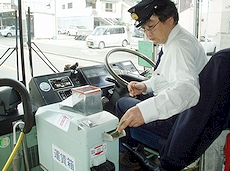 (右)乗客の女性が両替機を使用しますと不調(^-^; で、運転手さんが代行しておられますけど、これまた悪戦苦闘(^-^;