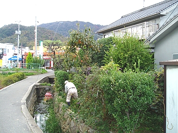 (左)庭の剪定も大変ですネ…剪定したのが用水路に落ちますから、後でそちらも片付けないとイケませんし…
