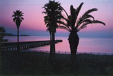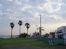 (左)肉眼では実に美しいのですけど、性能の悪い私のデジカメでは今一ですねえ(^-^; (右)民宿の二階からの景観です
