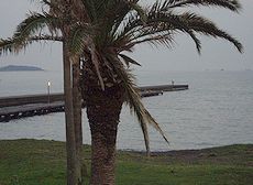 (左)(中)いずれも民宿前の早朝の景観です 右の白い建物が宿泊しました民宿です (右)早朝散策は、この館山城でありました(^.-)☆